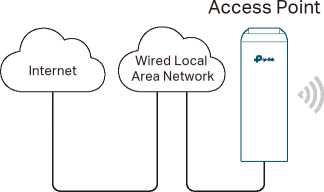 The device in the network: With the access to campus wired network or other wired local area networks, the device in AP Mode provides the wireless access for wireless clients, such as smart phones, laptops and tablets to connect to the network.