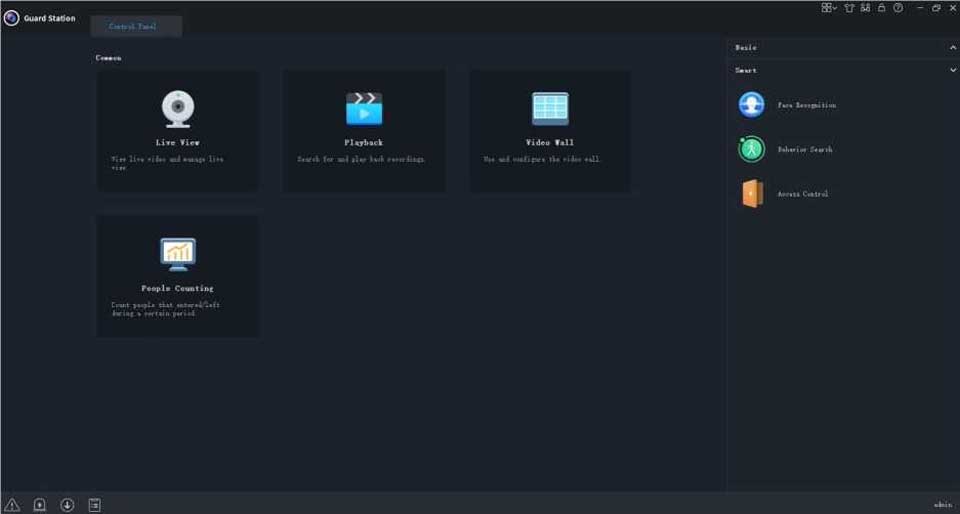 - The control panel includes the Common and Basic/Smart areas. Click an icon to access the corresponding module. You may drag an icon to change its position with another icon.
