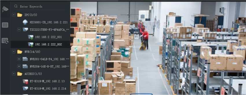 Devices include encoding devices, decoding devices, cloud devices, access control devices and network keyboards. The software supports up to 64 local devices and 64 cloud devices, up to 512 local channels and 512 cloud channels.