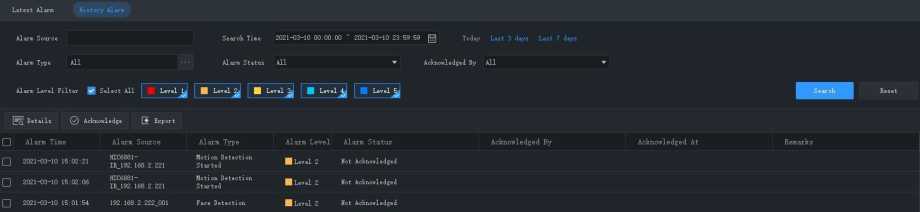 Length of video before/after the alarm time for playback. Use these settings to customize the length of alarm video that plays on the Alarm Records page. |