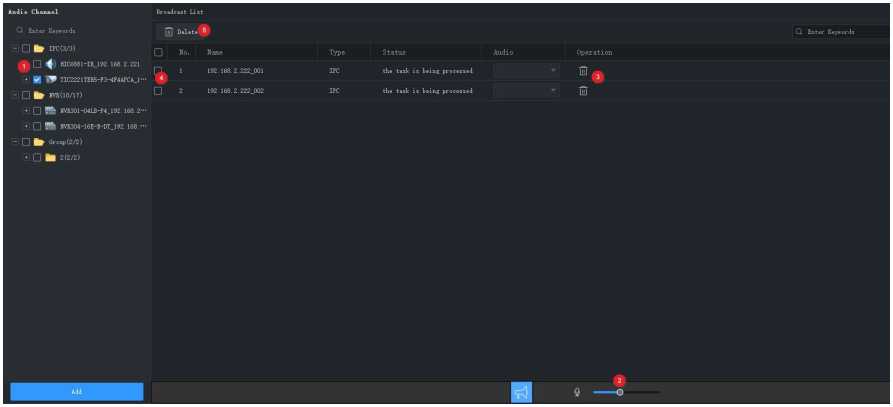 - Click Device > Encoding Device. The page is divided into two areas with two lists: