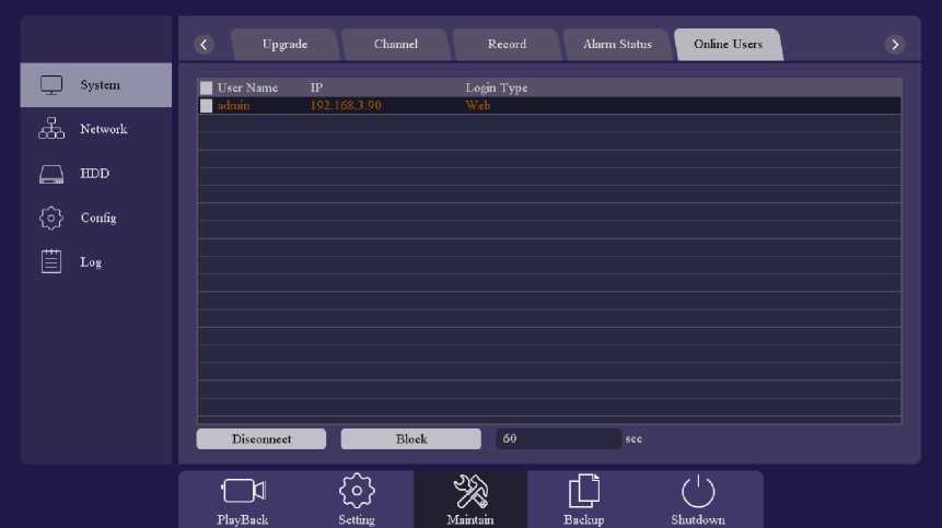 - Sleep: If the hard disk does not record or not play back in a few minutes, the disk will fall into sleep. This function can enhance the life of the hard disk.