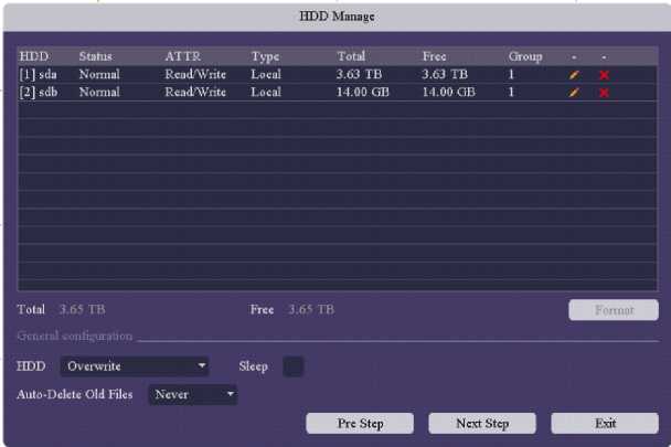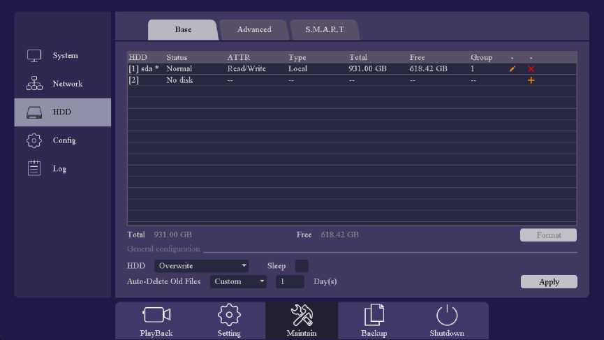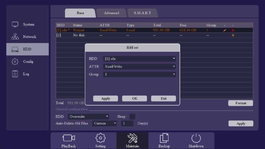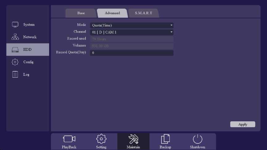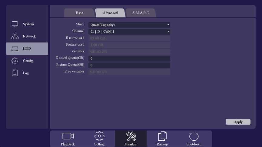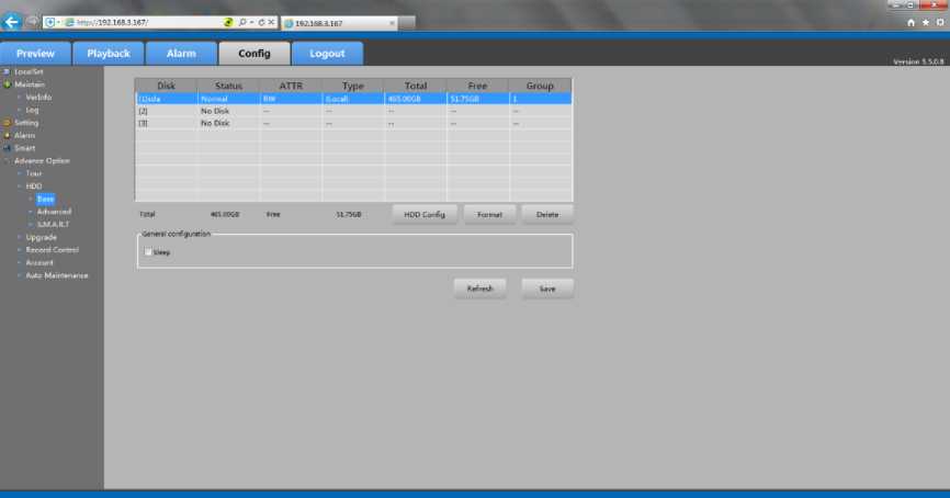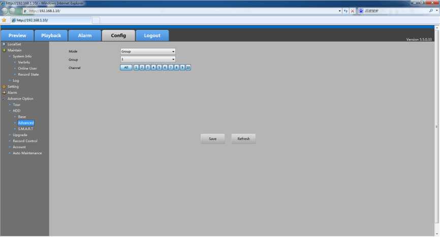 Click the Config-> Advance Option->HDD. It is similar to the HD DVR local settings.