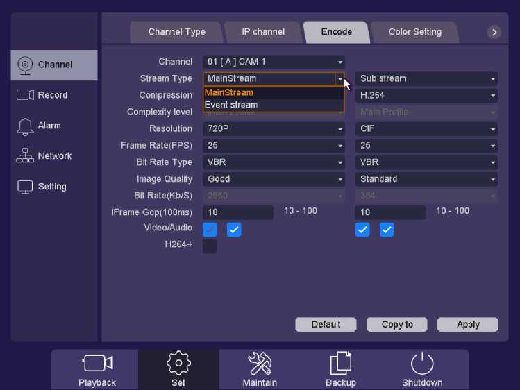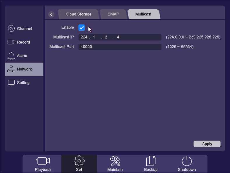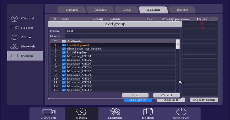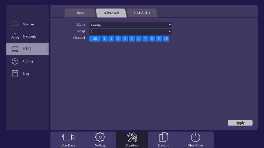 • Group mode: You can select several channels attached to a disk group. Then their videos will be recorded in the group.