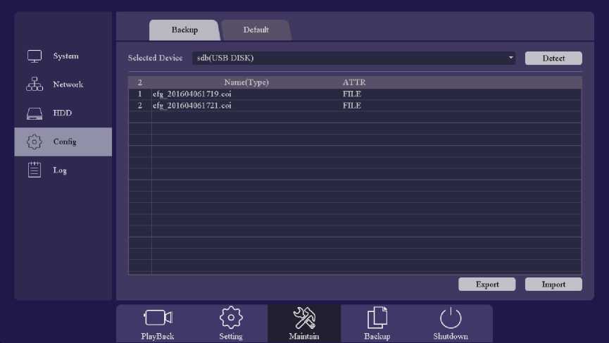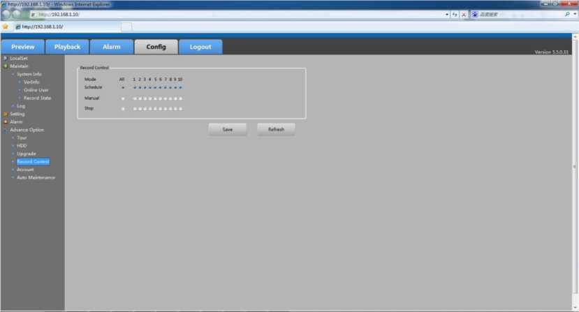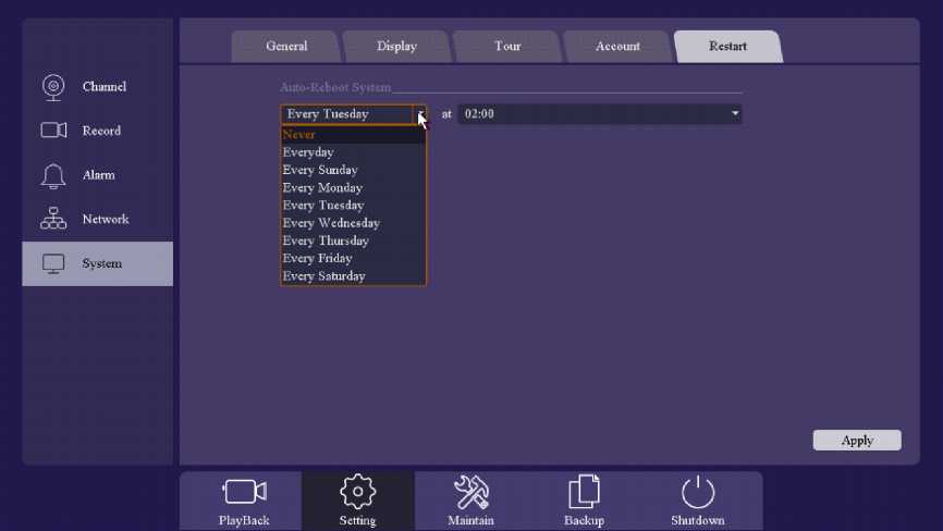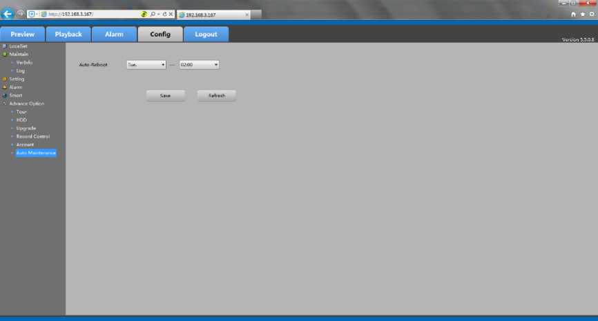 Click the Config->Advance Option->Auto Maintenance. It is similar to the HD DVR local settings.