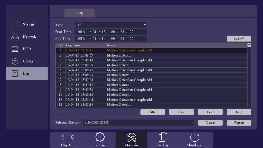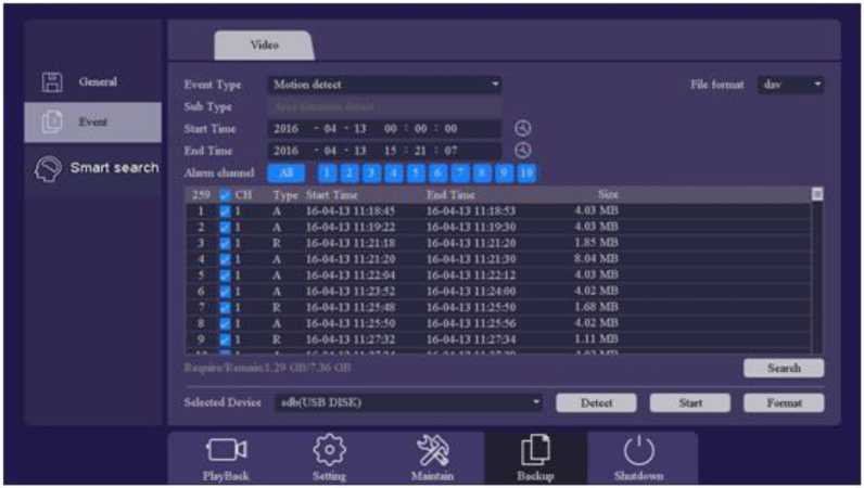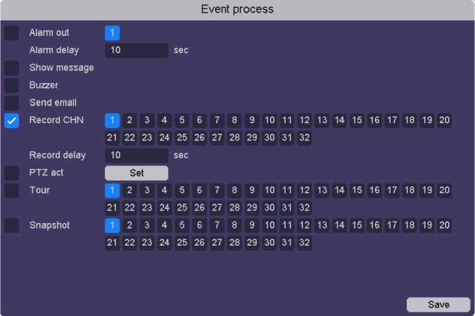 The feature is similar to the local alarm of HD DVR. Event types are composed of motion detection, video loss and video shielding.