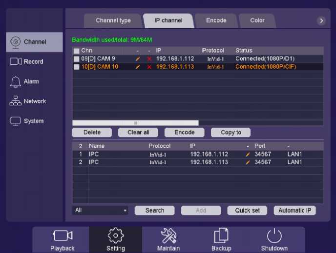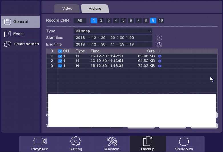 - Quota mode: You can save videos or pictures for each channel that does not exceed the total volume of space.