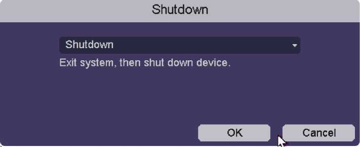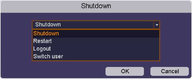 Click right of the mouse on the live view interface and choose “Main Menu>Shutdown”, then click ok button, shown as figure 3-1.