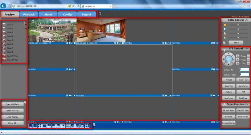 - Alarm Linkage Control: Include alarm output, show message, buzzer, send Emails, alarm recording, PTZ Act and tour.