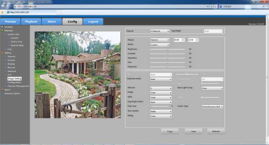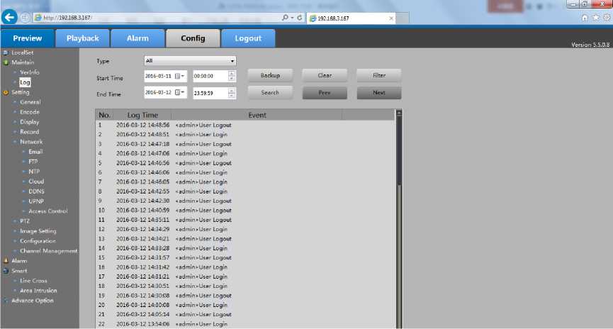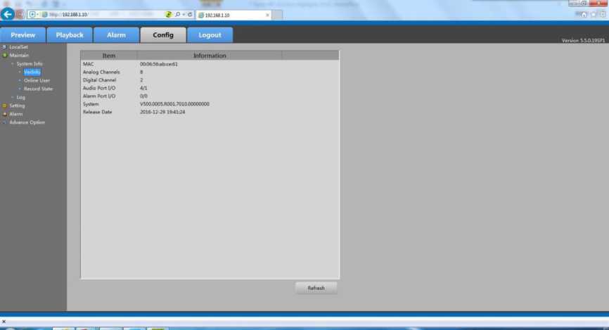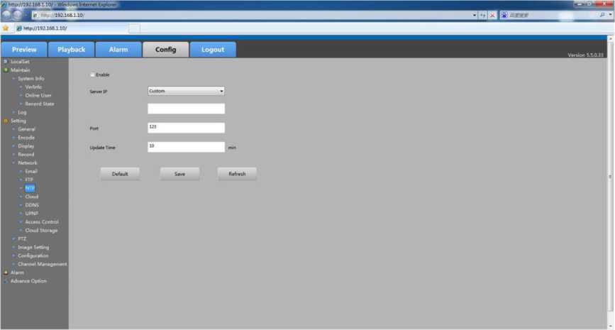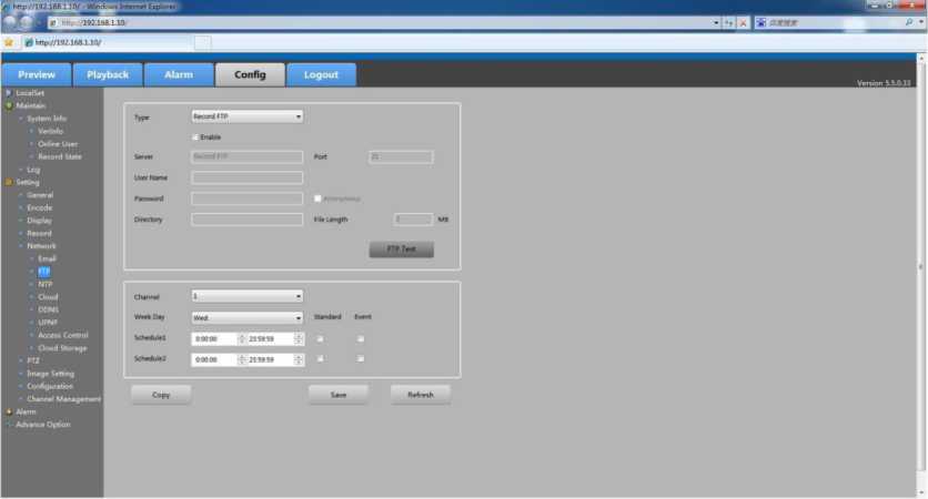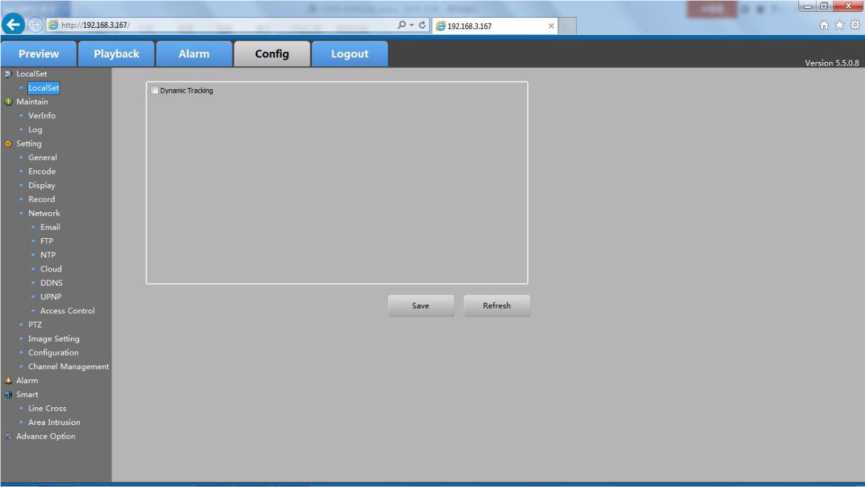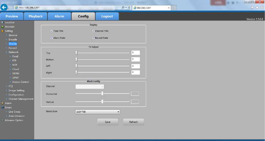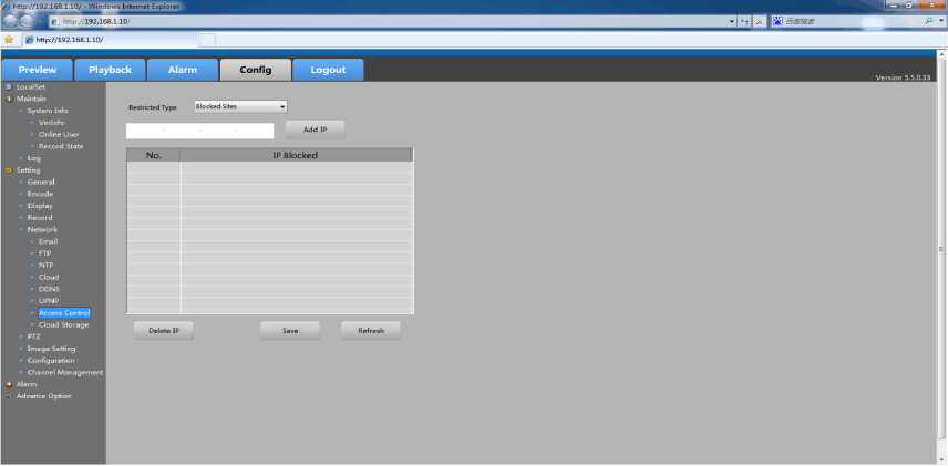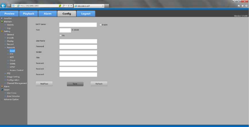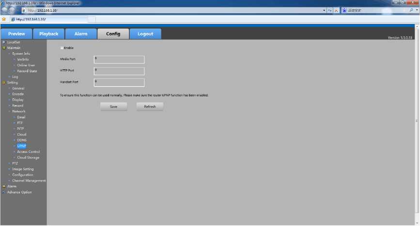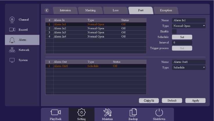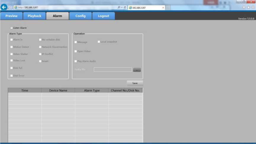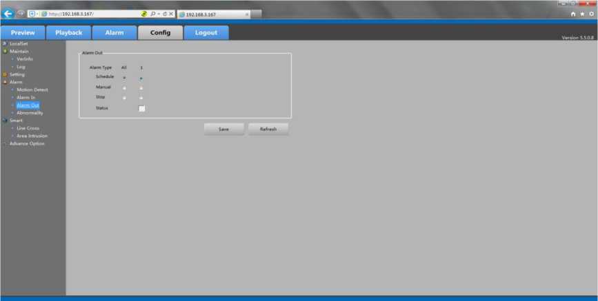 Click the Config->Alarm->Alarm In/Alarm Out. You can set up alarm port and linkage operations.