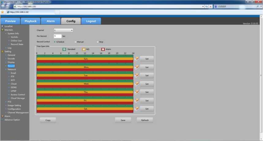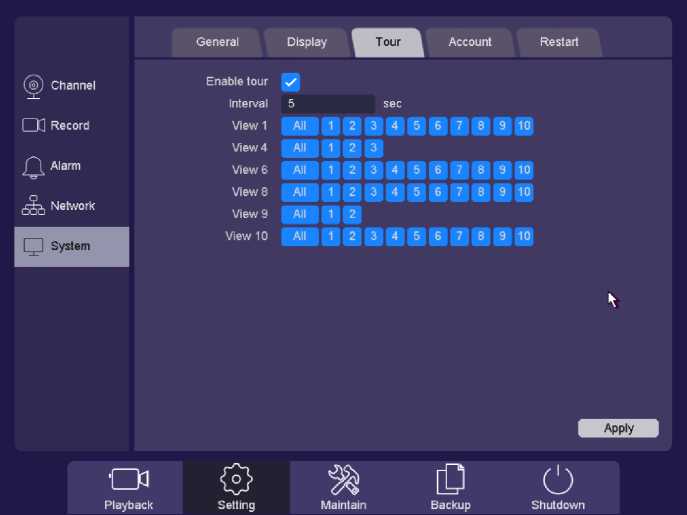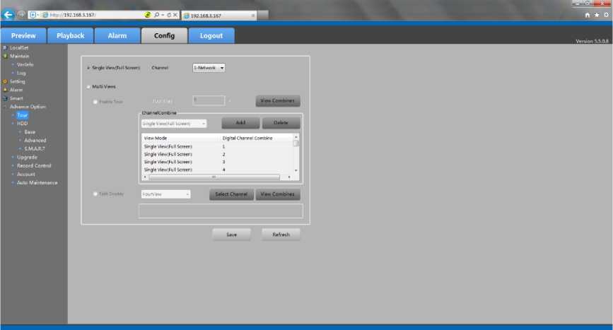 Click the Config-> Advance Option->Tour. It is similar to the HD DVR local settings.