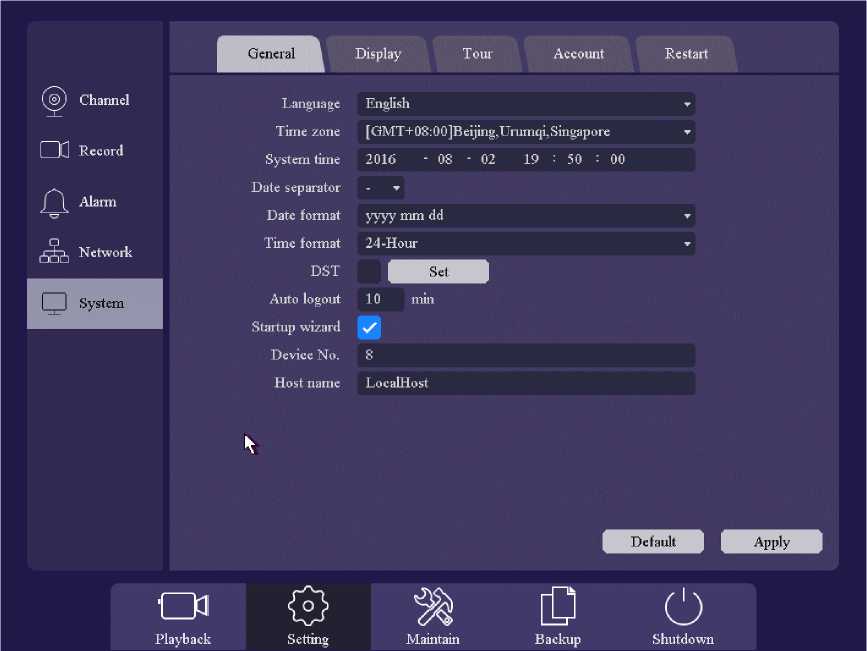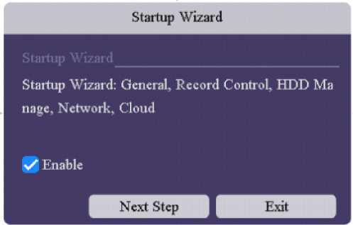 - The Startup Wizard can walk you through some important settings of the HD DVR. If you don’t want to use the Startup Wizard at that moment, click the exit button. You can also choose to use the Startup Wizard next time by leaving the “enable” checkbox checked.