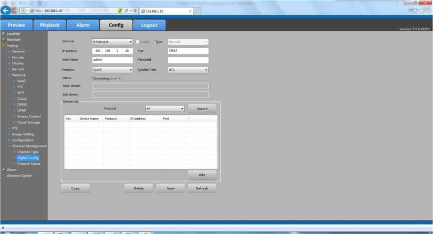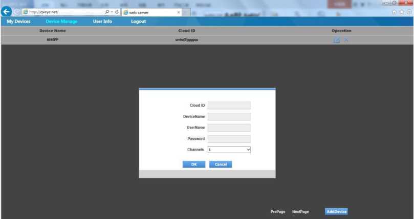 It is empty for the first time when using video surveillance list. Click the Add button and enter the device ID, device name, account number and then select Add channel.