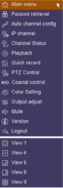 | Left-Click | Single-Click | Live view: Select channel and show the quick set menu.