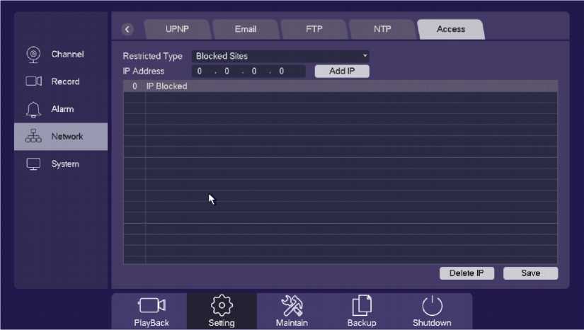• Network Disconnection: Alarm when the network cable is disconnected.