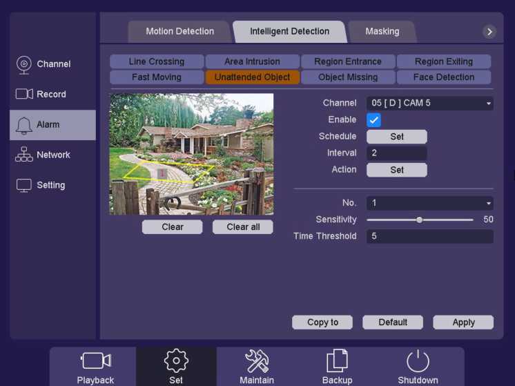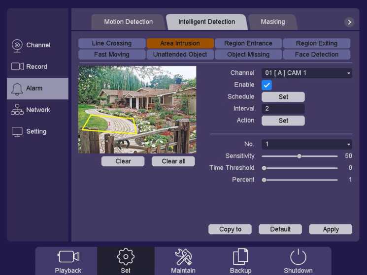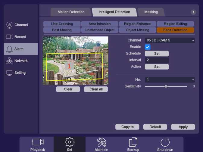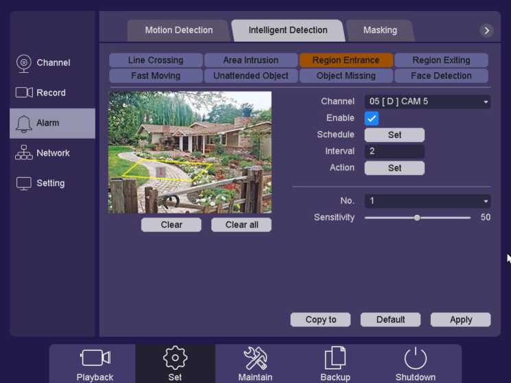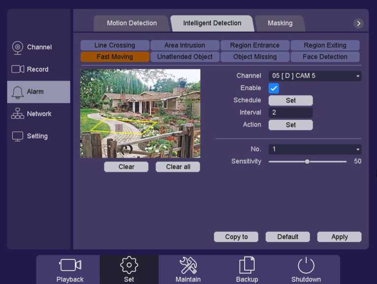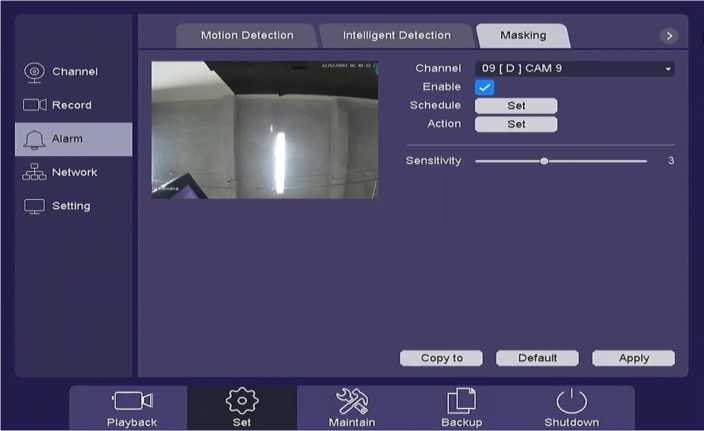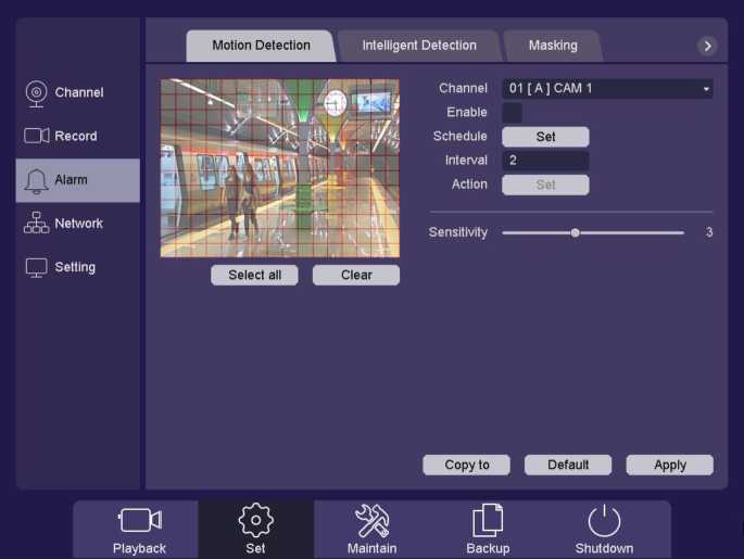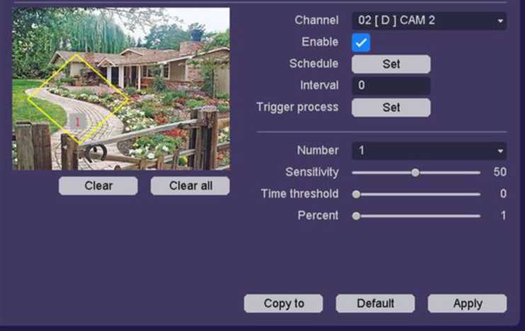 - Sensitivity: Change the sensitivity of the motion detection. The higher the sensitivity, the easier to trigger alarm.