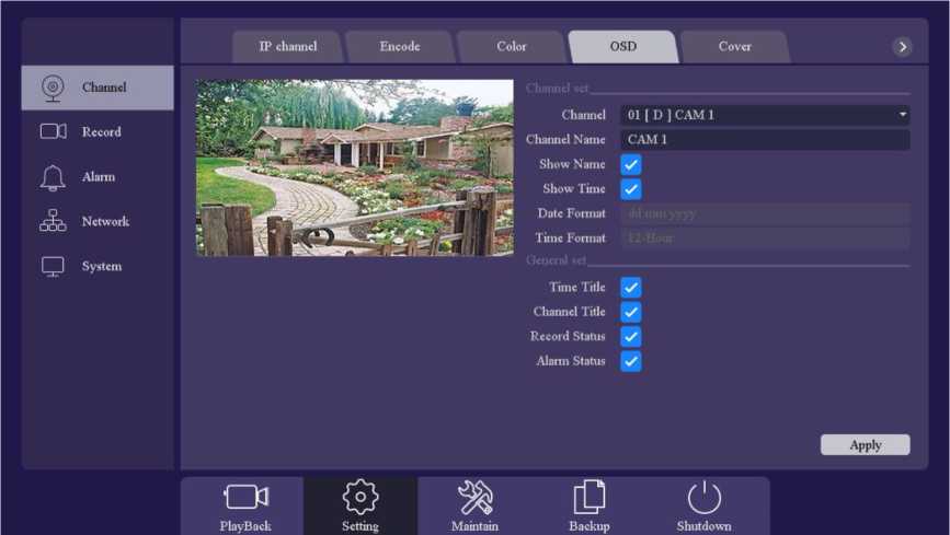 - Photo Quota: You can manually set the channel quota size to save the screenshots. Select one channel to set the quota size.