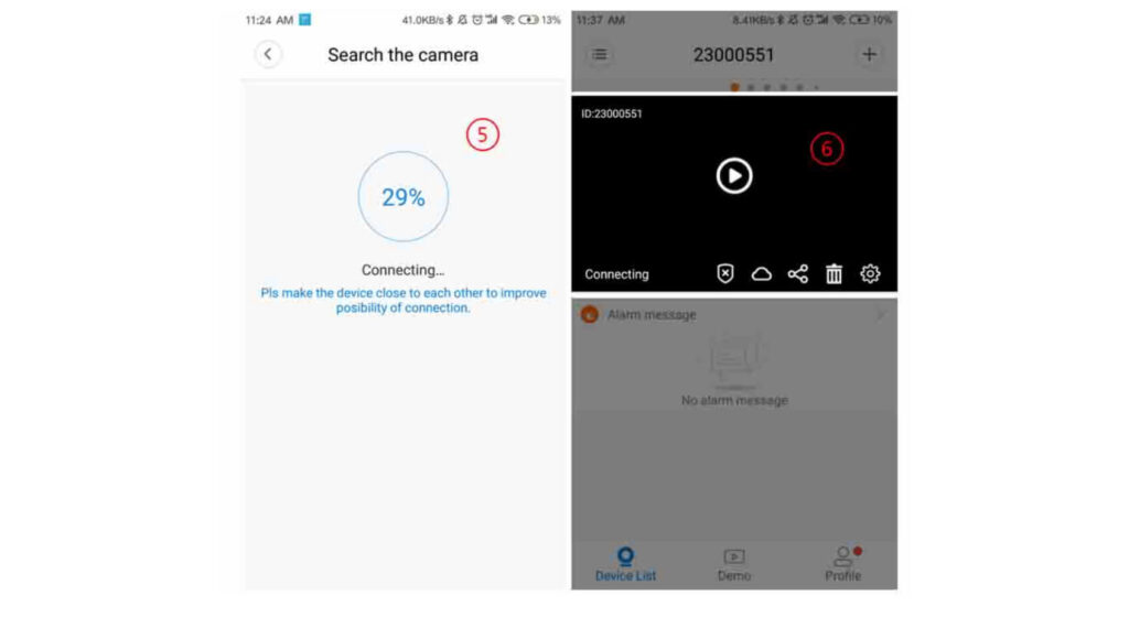 1) Connect the camera to the phone APP