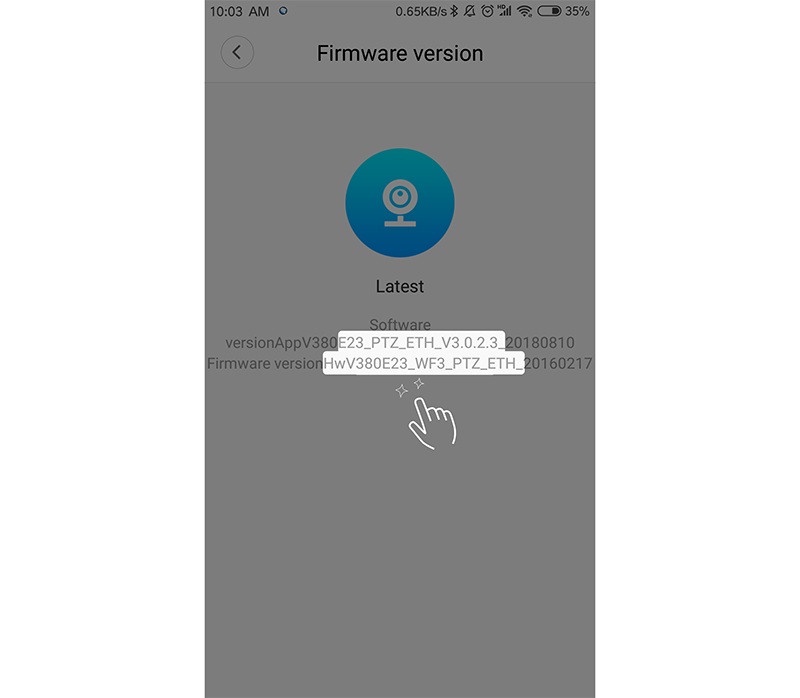 · After the camera is connected to the mobile phone, check [System Software Version] on the V380App-[Device Configuration]-[Device Upgrade] screen.