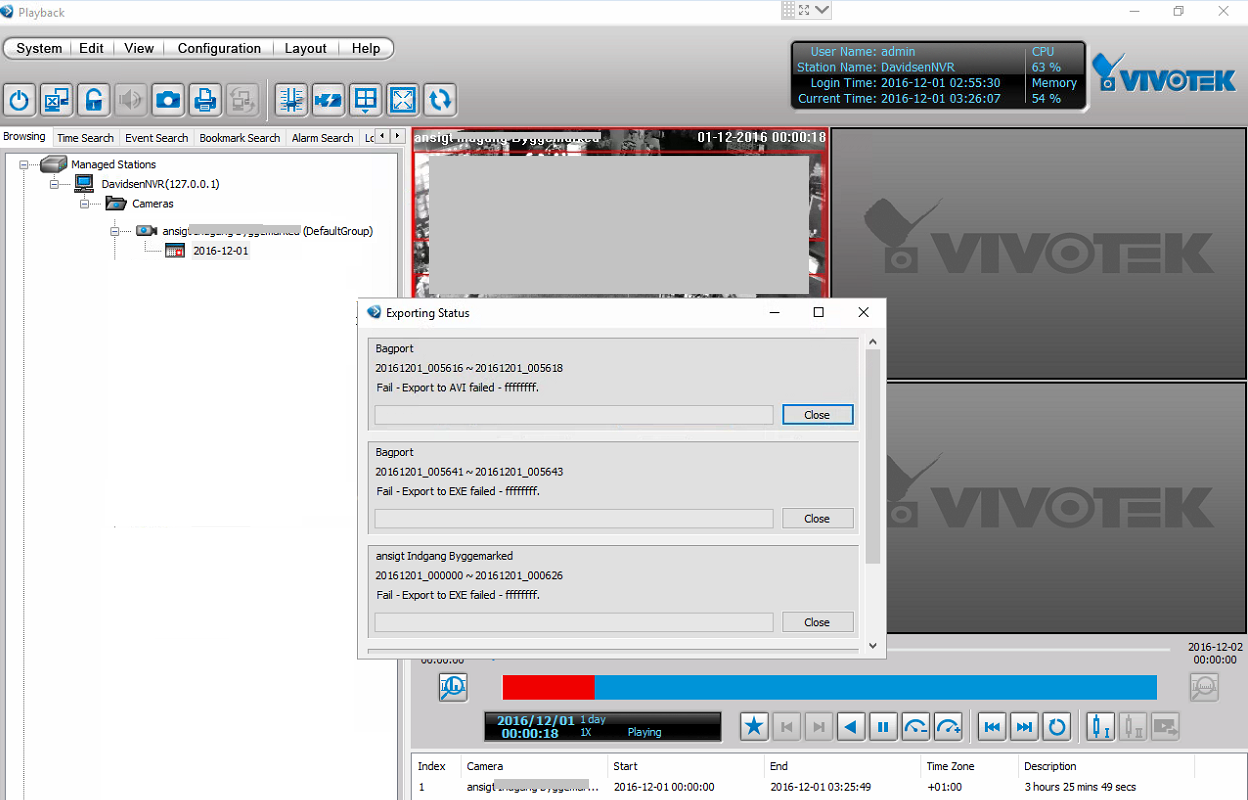 Why does VAST playback show export failed ffffffff while exporting video clips?