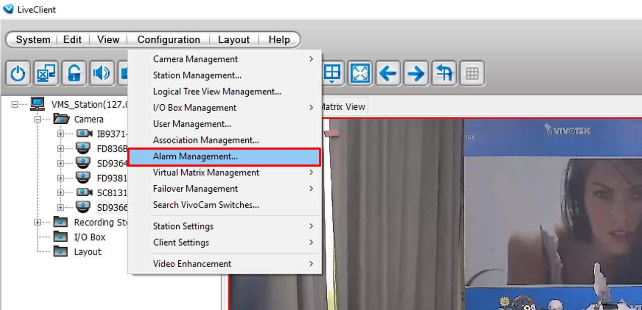 Step 3. Go to Configuration > Alarm Management… to set an alarm.