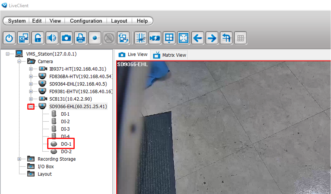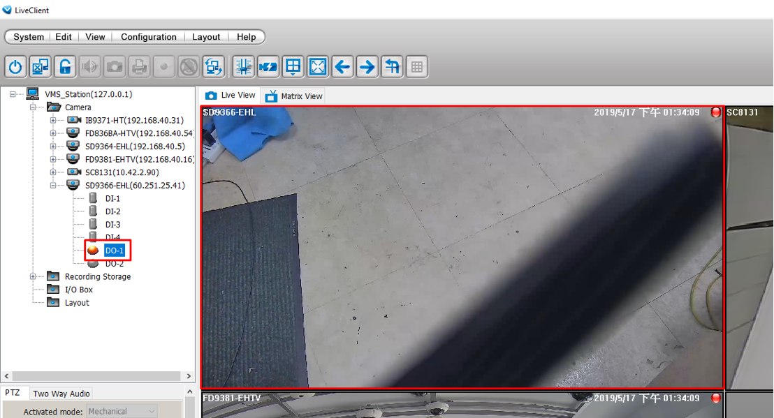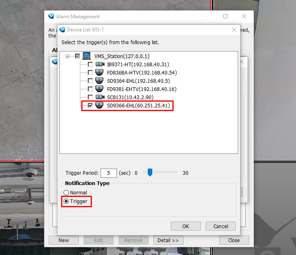 Step 7. In the Device List -DO-1 window, select the SD9365/SD9366 camera.