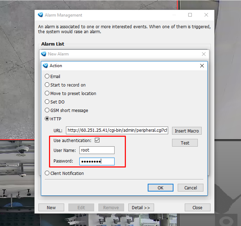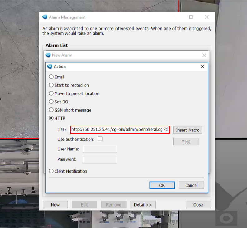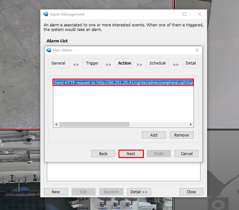 Step 10. In the “Action” window, select the HTTP action, then use the following URL to enable the wiper in the camera: