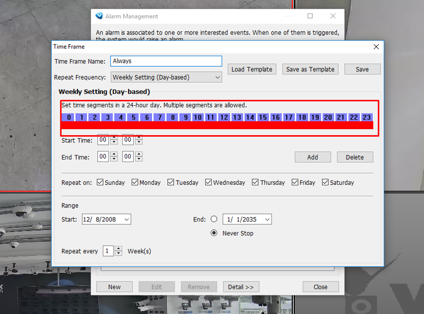 Step 12. Keep the schedule as “Always” (making the alarm available 24 houts /7), then press Next.