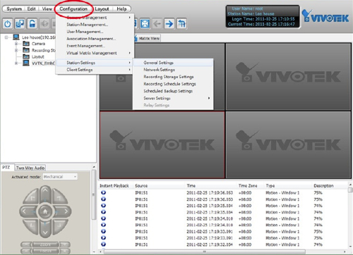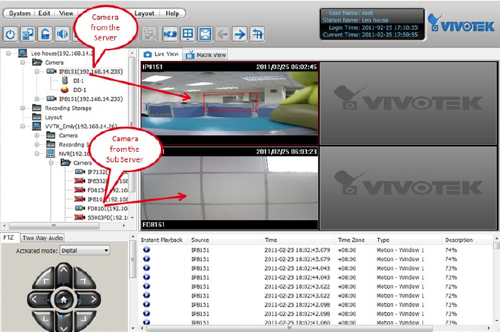 VAST supports the management of more than 64 cameras and multiple substations, allowing you to configure their settings and view video relayed from them.