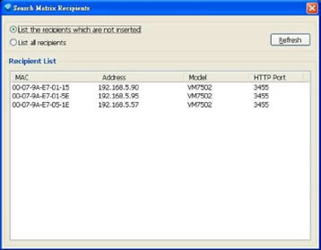 - Easy searching Click to search for VAST Matrix recipients on the LAN.