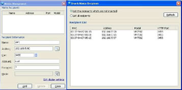 - You can click to search for Matrix recipients on the LAN or add a new matrix recipient by entering its IP address, account name and password.