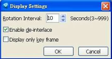- Click “Edit display settings to bring up the Display Settings window, where you can set the rotation interval, enable de-interlace mode, and toggle the display key frame only feature on or off.