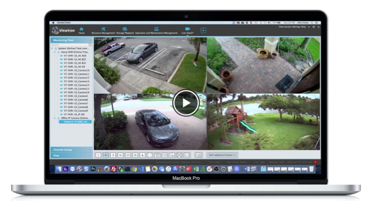 The Mac software that is included with all Viewtron products allows users to view their security cameras, create custom video layouts of multiple cameras at multiple locations, receive alarm alerts, and playback recorded video. Please take a look at our Mac security camera software for Viewtron overview page for more information.