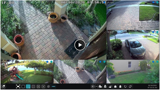 The Windows VMS software supports network IP cameras up to 4K resolution. The above image shows a home security camera system that uses a IP-D8 to monitor the front door. The camera is connected to a Viewtron hybrid DVR / NVR. The video management software can connect directly to IP cameras and also to NVRs / DVRs.