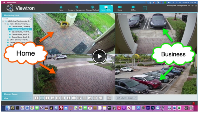 Watch this video to see the Mac security camera software connect to a Mike’s home security system DVR and an Viewtron IP camera installed at CCTV Camera Pros business location.