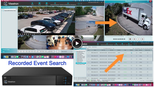 Watch this video to see the how search it is to search for AI object detection events and motion detection events using the Viewtron CMS camera software (NVMS). The video events are displayed in a list where you can playback the recorded video and also download and export an AVI file to your PC.