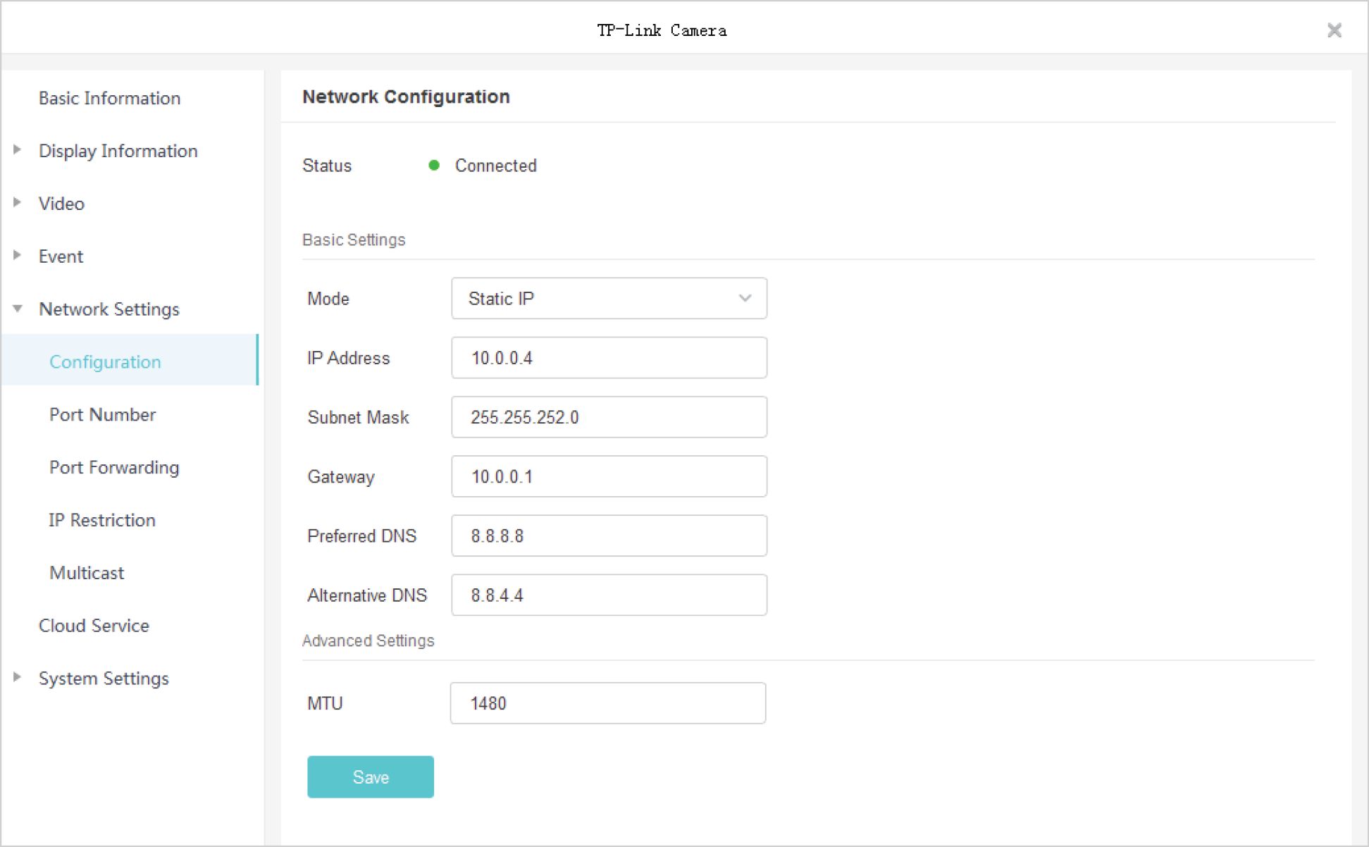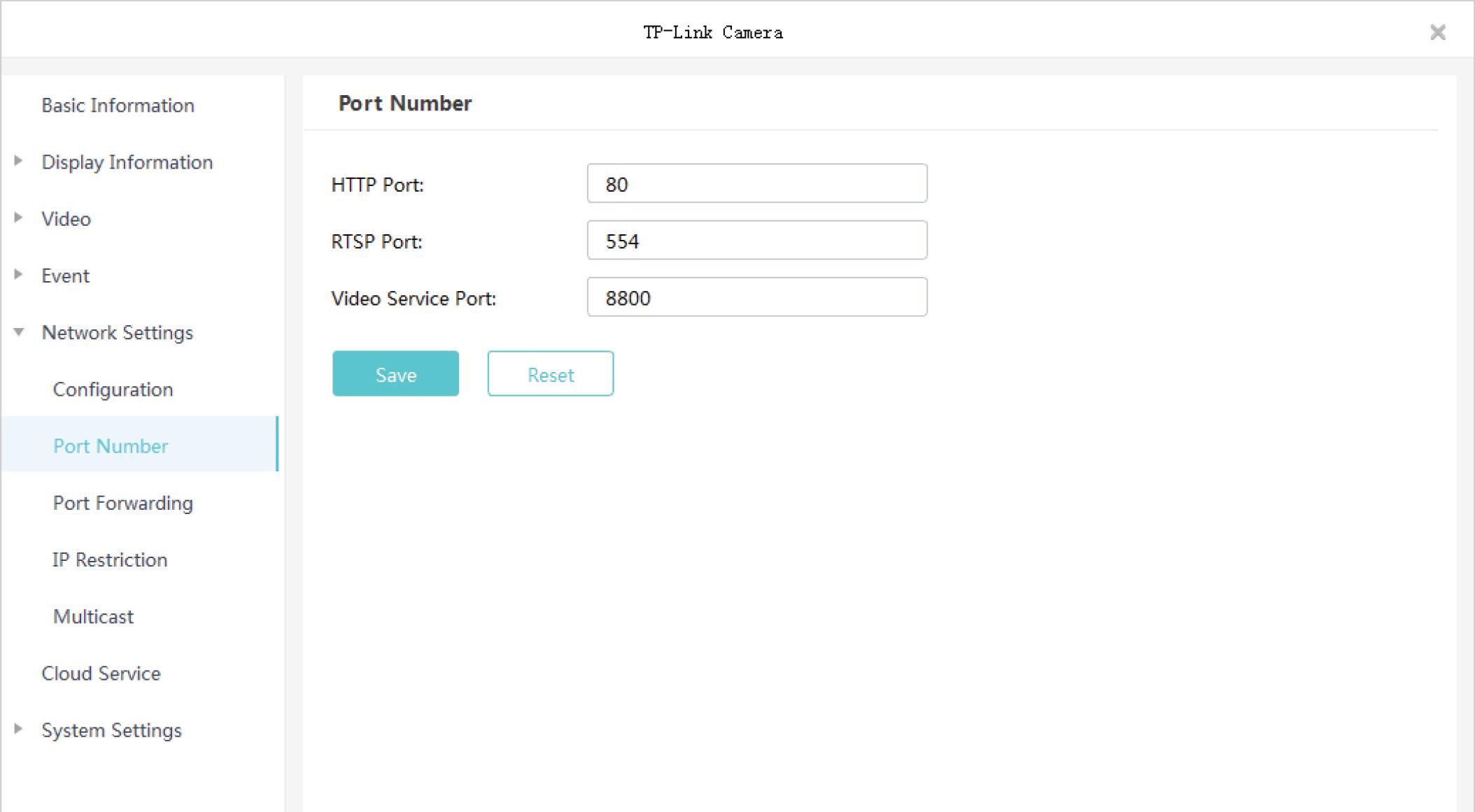 In Port Number, you can configure the HTTP port, RTSP port and service port that can be used to access the camera through the network. Also, the ports configured here are used for communications of corresponding protocols.