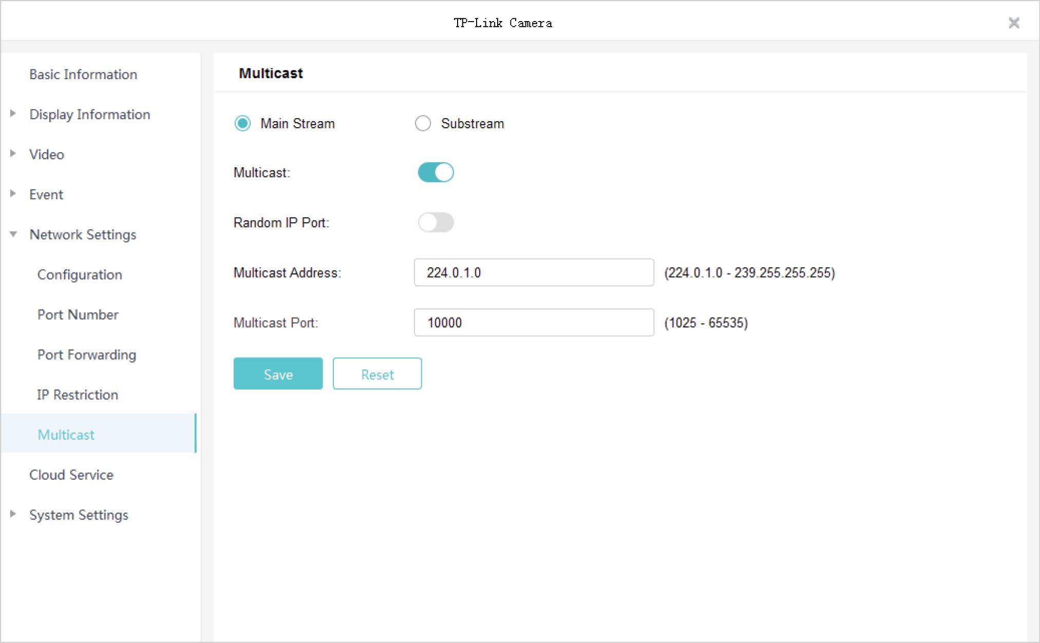 When Multicast is enabled, you can watch videos using the multicast address and port.