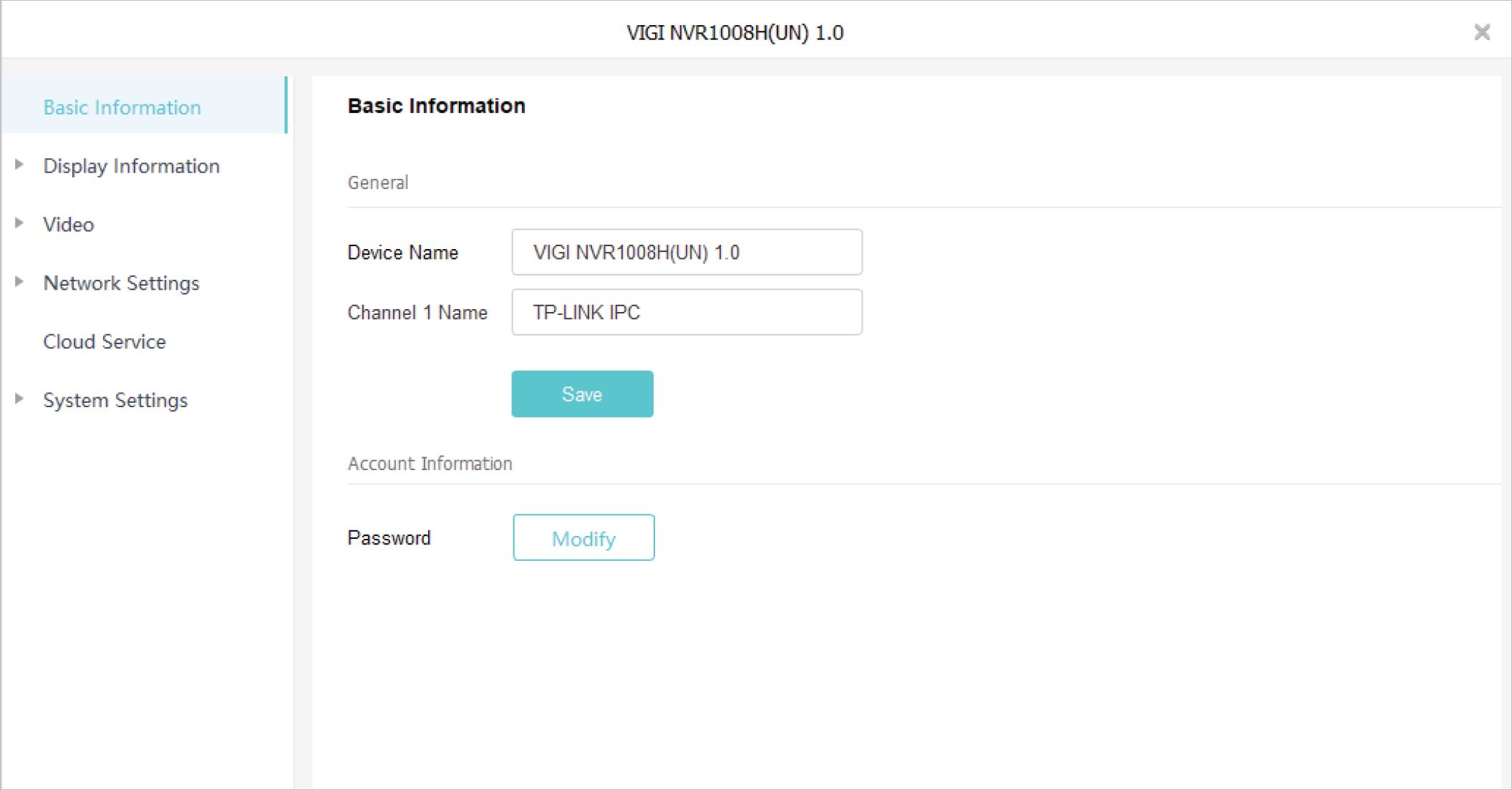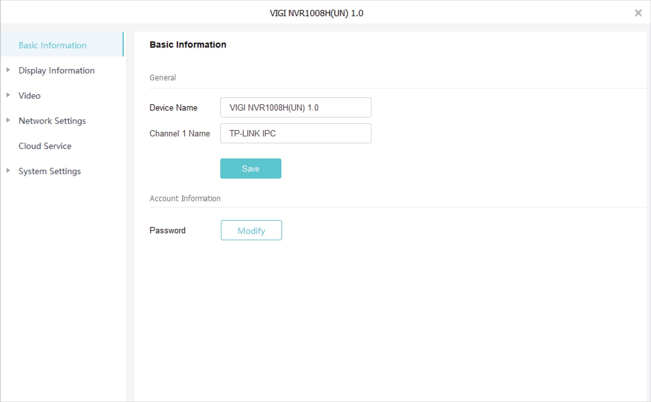 To modify the device name, channel name (only for NVR) and passwords of devices, go to Settings > Device List and click O in the list. Then go to System Settings > Basic Settings.