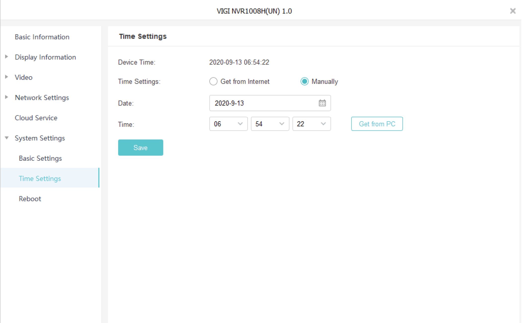 You can set the device time manually or click Get From PC to synchronize the device time with that of your PC.