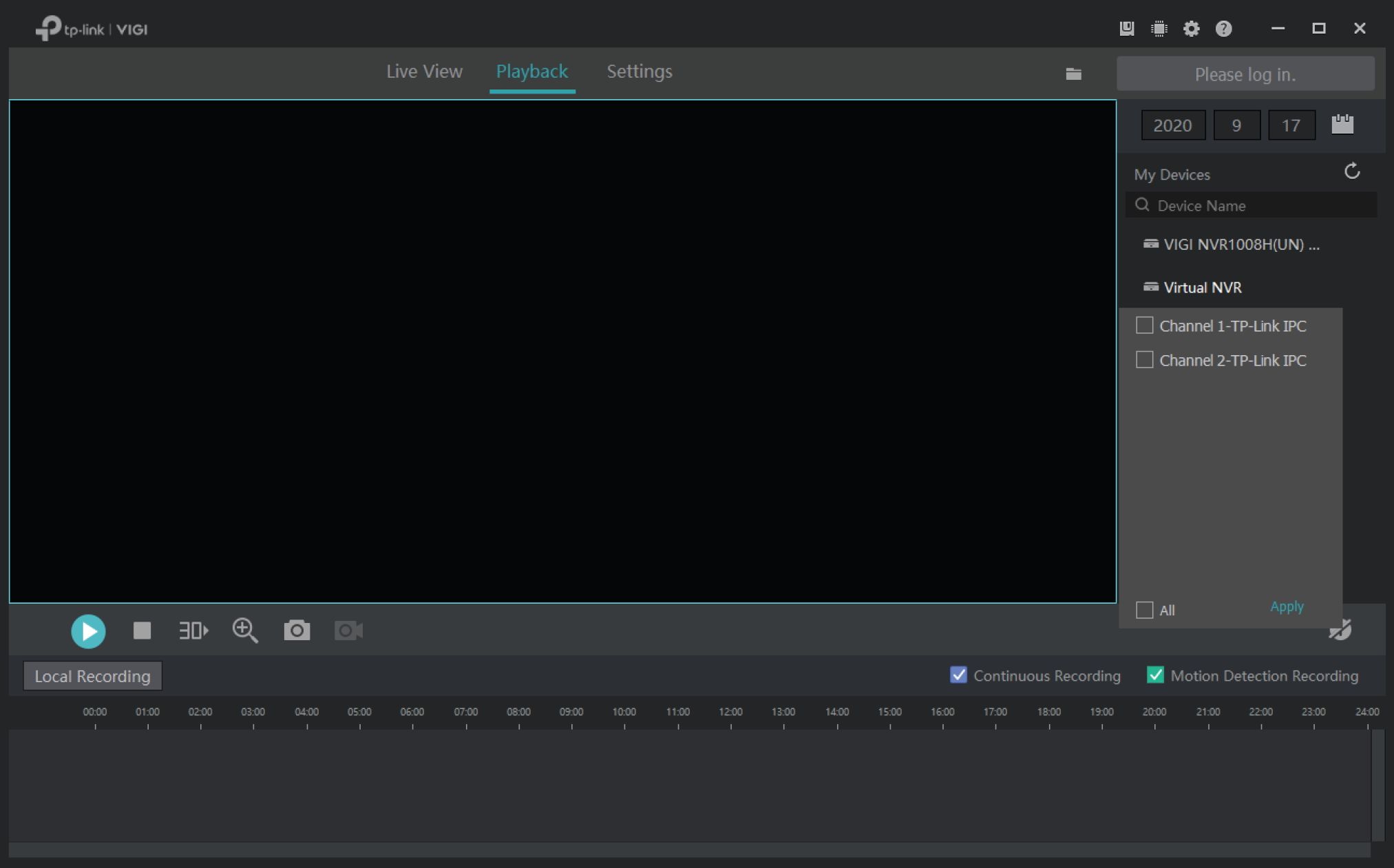 If you want to monitor your home or office while away, you can download and install VIGI Security Manager on a computer connected to the internet, then log in to your TP-Link ID. With the cameras or the VIGI network video recorder bound to your TP-Link ID, you can watch the live view and playback.