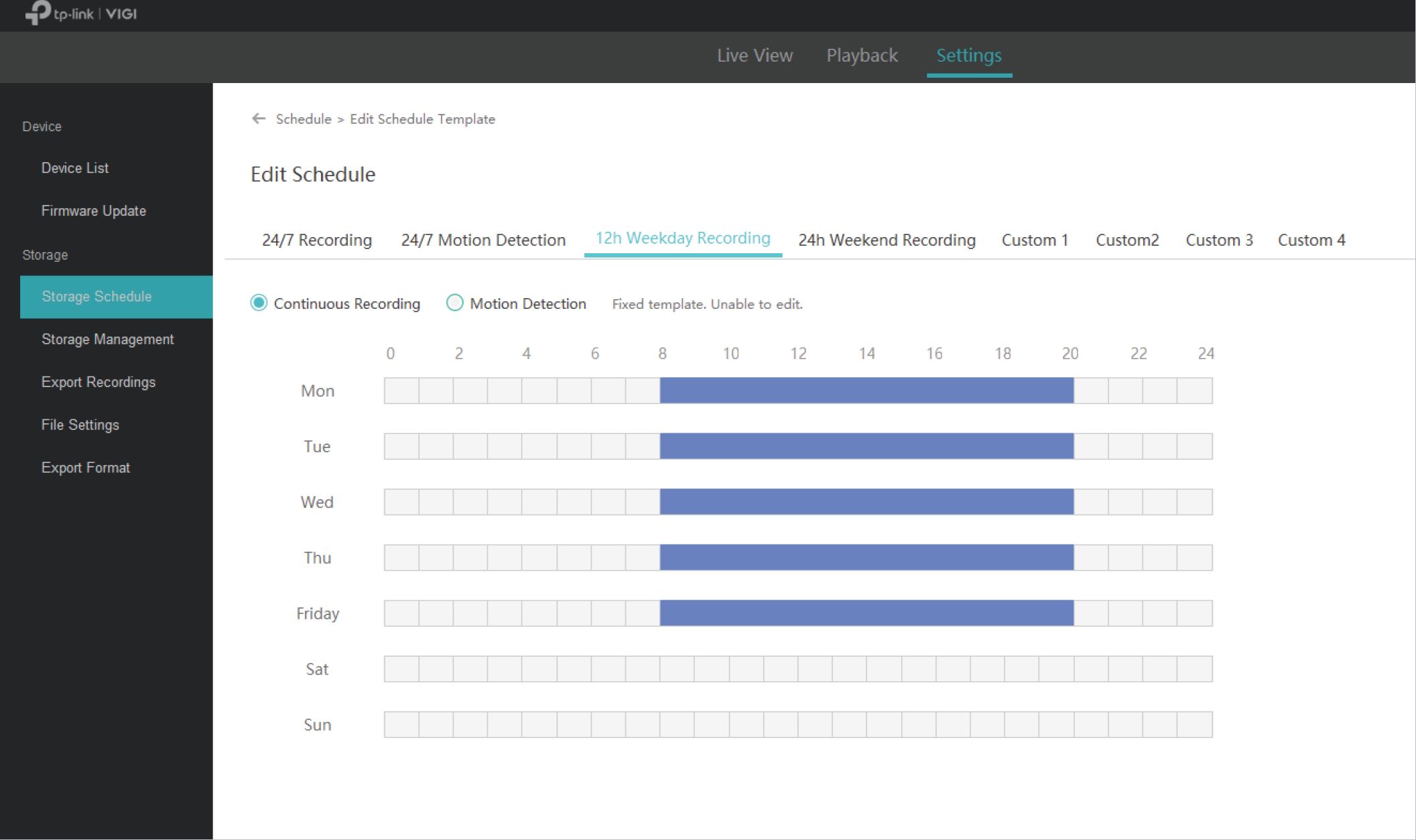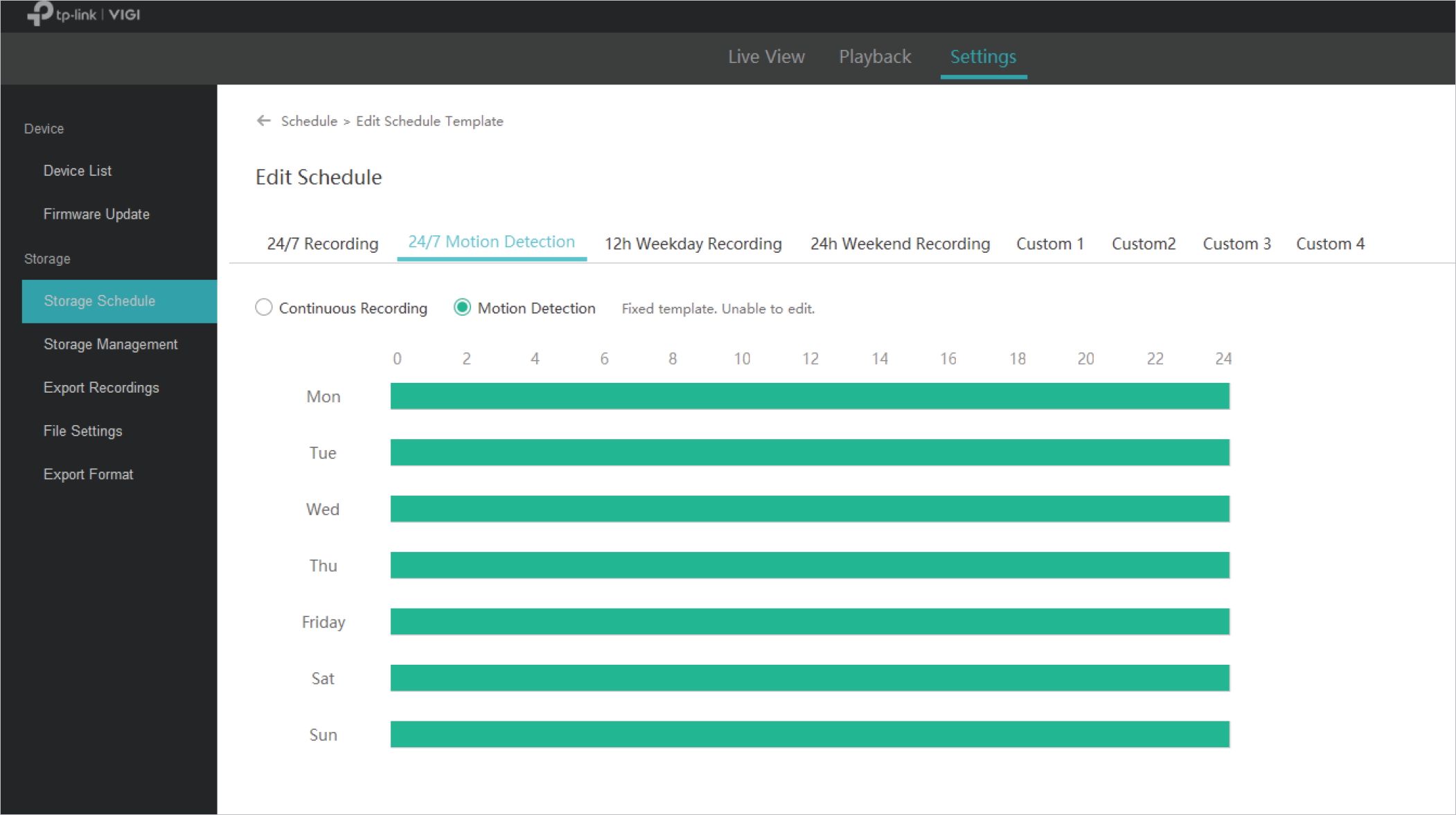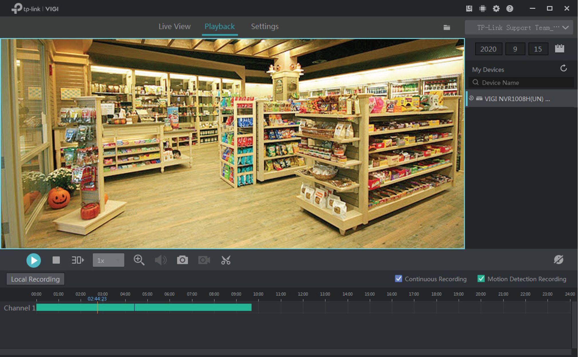 With a reliable network management platform powered by VIGI Security Manager, you can watch the live view and playback, add devices, configure events, set recording and storage schedule for cameras, and export recordings to your computer.