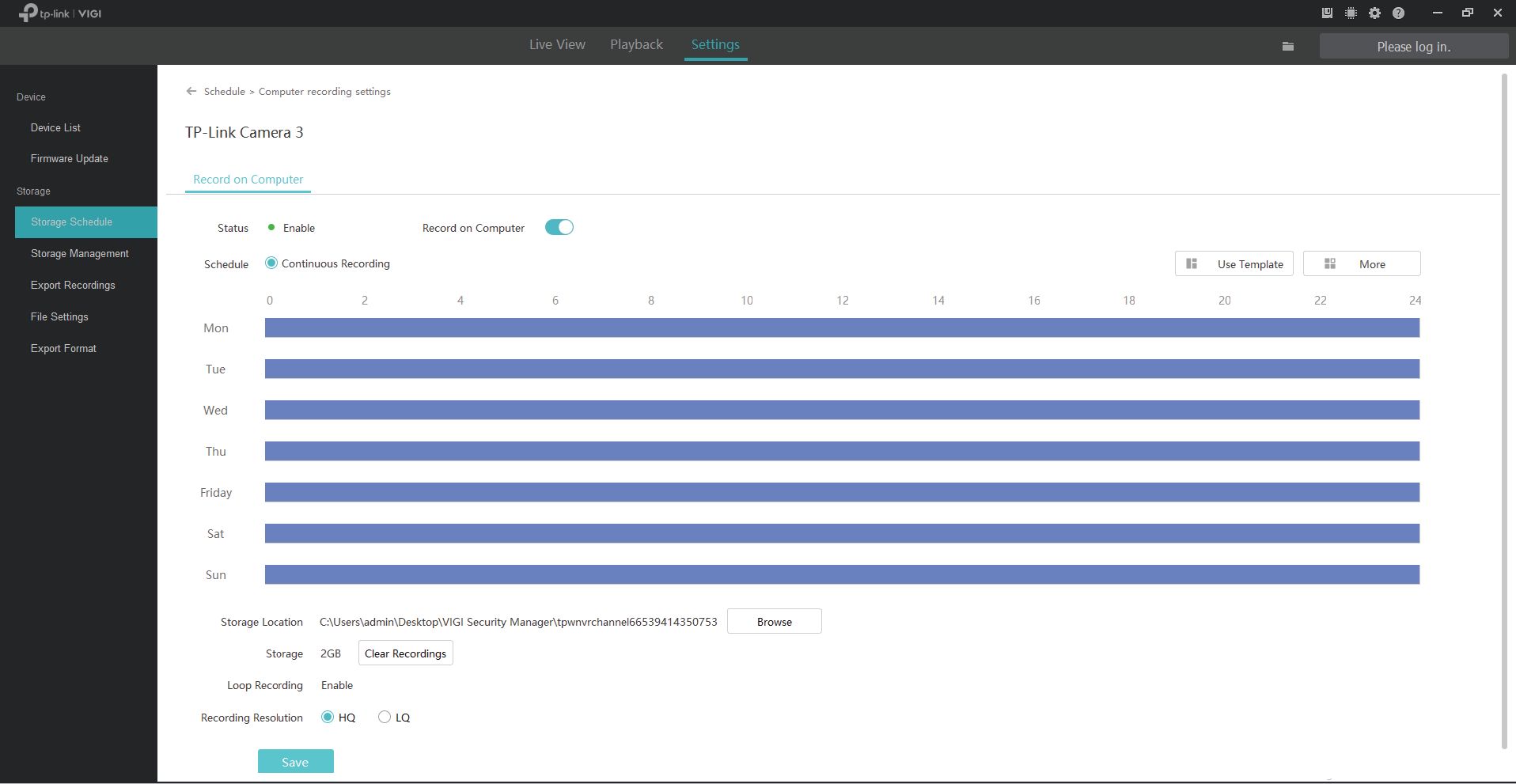 When the computer is in the same subnet as your cameras and VIGI Network Video Recorder, download and install VIGI Security Manager on your computer to watch the live view and playback, add devices from the discovered list, manage devices, set recording and storage schedule for cameras and export recordings to your computer.
