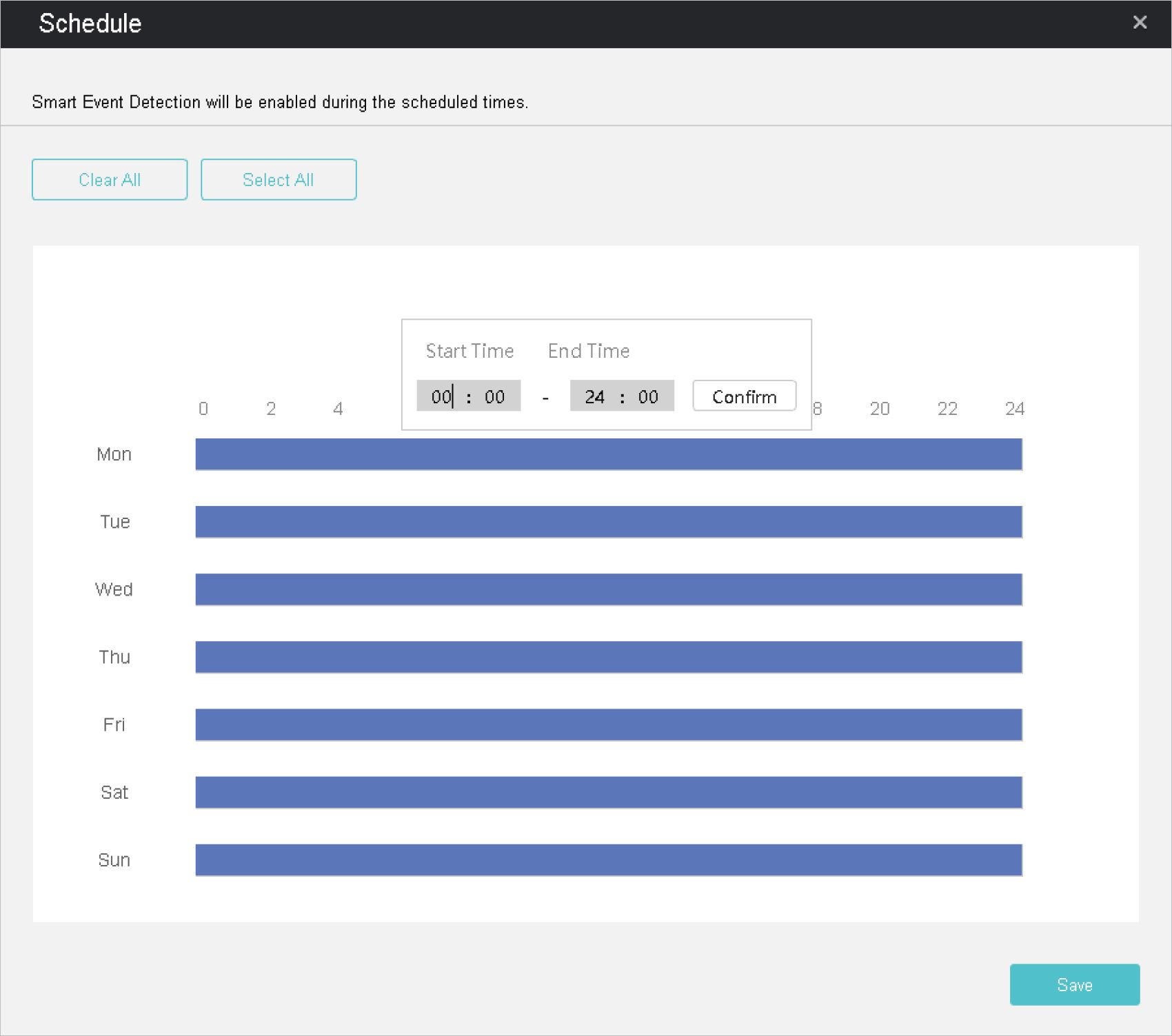 | Schedule | Click 1 Change 1 to customize the recording schedule of the camera on computer. It determines the time period for camera recording. |