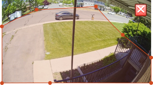 A detection zone is less effective when it covers more than the ground on your property. If your detection zone extends beyond your property or into the sky, it may cause your camera to unnecessarily detect, record, or play its deter tone. And if you’ve integrated a Spotlight Pro, your light could be strobing your neighbors!
