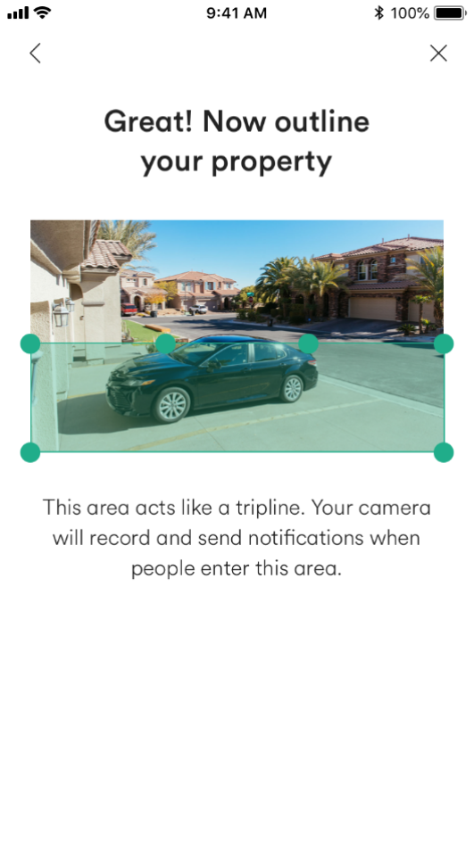 For the most accurate detection we recommend limiting your detection zone to the ground. This ensures the camera only reacts when a person steps into this space. If you outline the sky or anything outside your property, for example, you could receive false detections and notifications. Note that a person’s entire body does not need to be inside the detection zone for your camera to react.