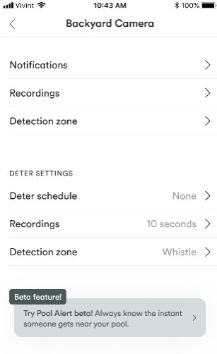 If you are not receiving notifications, check to make sure notifications are enabled on your phone and Vivint app. If notifications are already enabled, you may need to adjust your Outdoor Camera Pro’s detection zone.