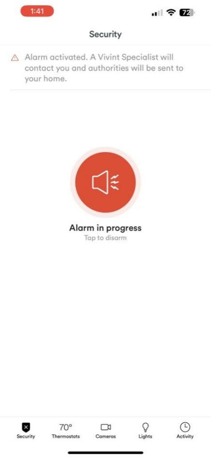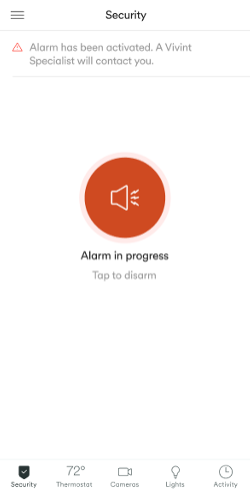 If your system does trigger a false alarm, you can cancel the alarm by disarming the system from your Vivint Smart Home app and selecting the false alarm option from the pop up.