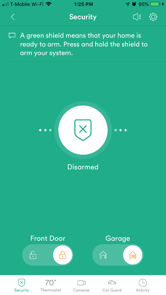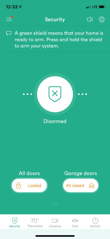 Yes! You can check the status of all of your sensors by tapping the settings icon in the top right corner of the home screen. You can also view the recent activity in your system by tapping the clock icon in the bottom right corner to load your activity feed.
