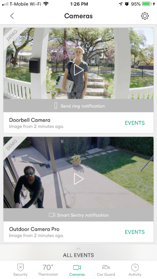 Demo Mode on the Vivint Smart Home app allows you to test the look and function of a system that has thermostats, cameras, and Car Guard.